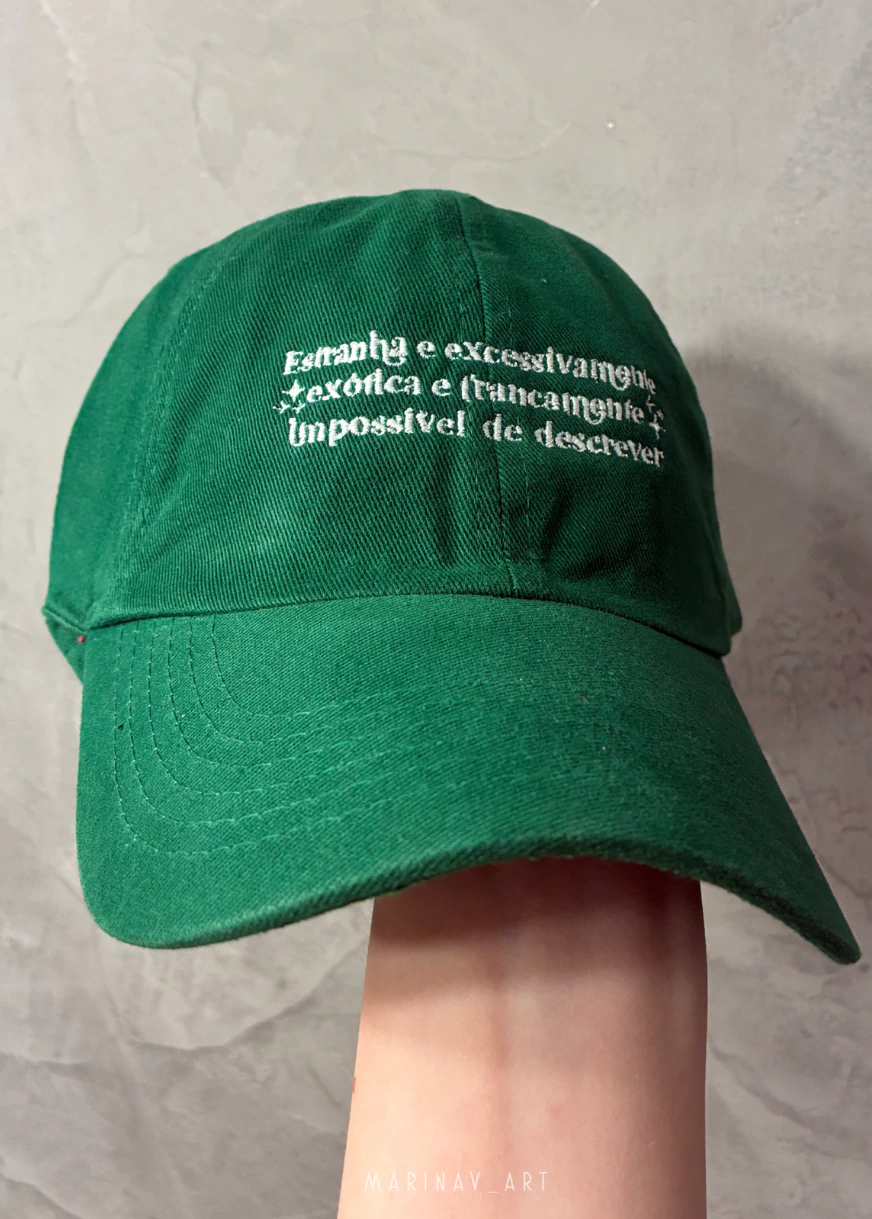 Estilo Dat Hat, verde, estampa feita em bordado e 100% algodão