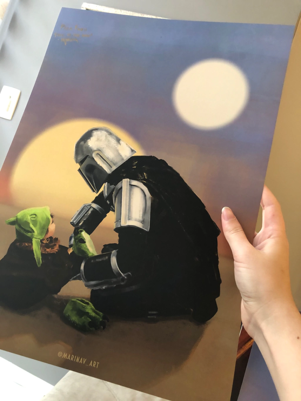 Pôster inspirado pela série Mandalorian, produzido pela artista Marina V.