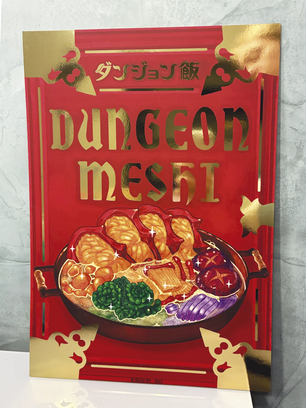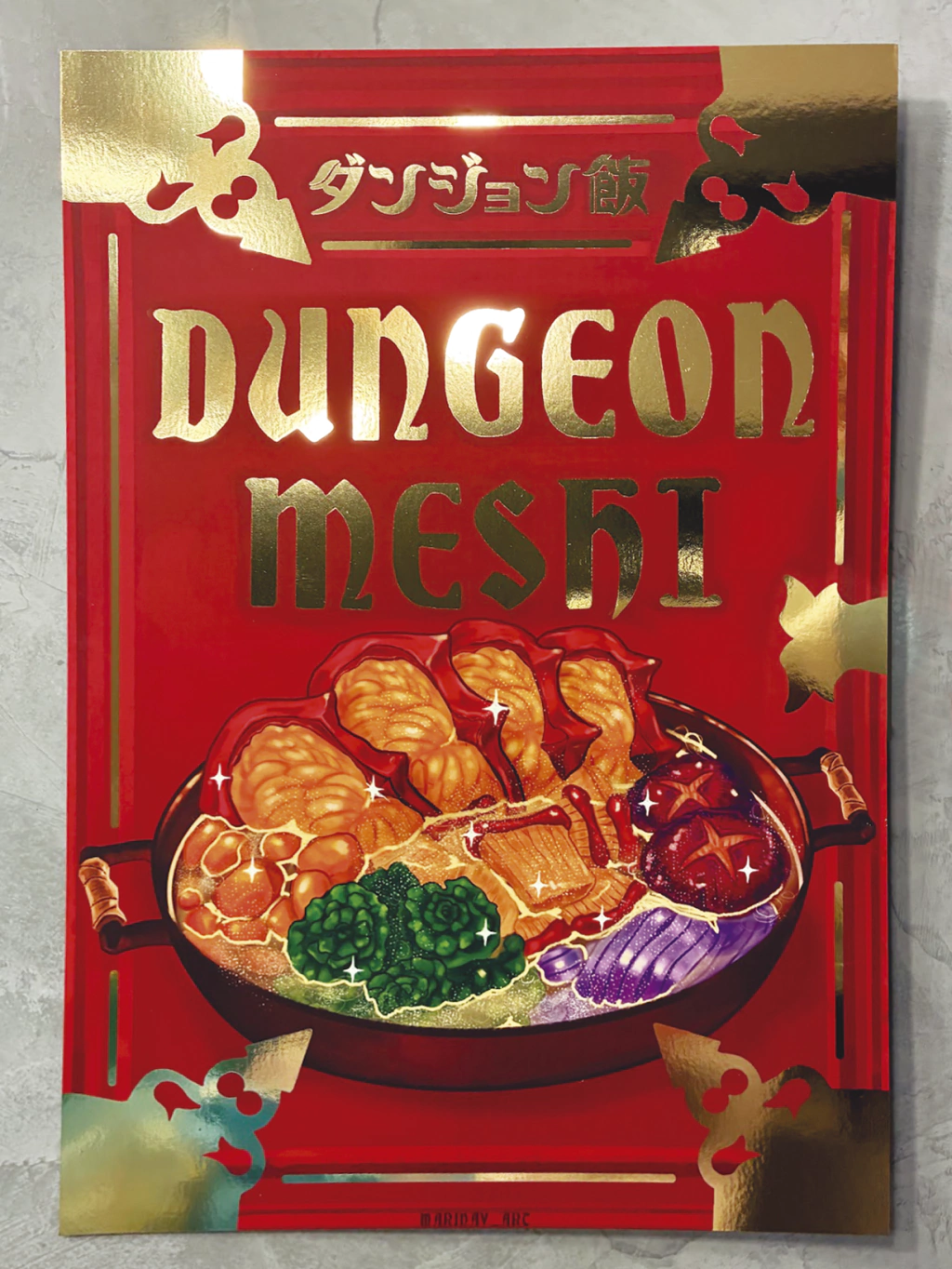Pôster inspirado pelo anime e mangá Dungeon Meshi, produzido pela artista Marina V.